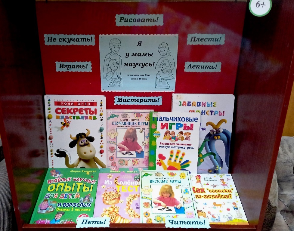 В отделе семейного чтения библиотеки им. В. Маяковского ко Дню семьи подготовлена выставка «Я у мамы научусь», на которой представлены красочные издания с обучающими и пальчиковыми играми, идеями для совместного творчества и удивительными опытами, которые можно провести прямо дома всей семьёй. Секреты лепки из пластилина или солёного теста, а также игры с английскими и русскими словами ждут всех желающих нескучно провести время со своими детьми и, возможно, научить их чему-то новому и интересному. Ведь, именно занимательный семейный досуг рождает незабываемые впечатления, яркие воспоминания и добрые семейные традиции!