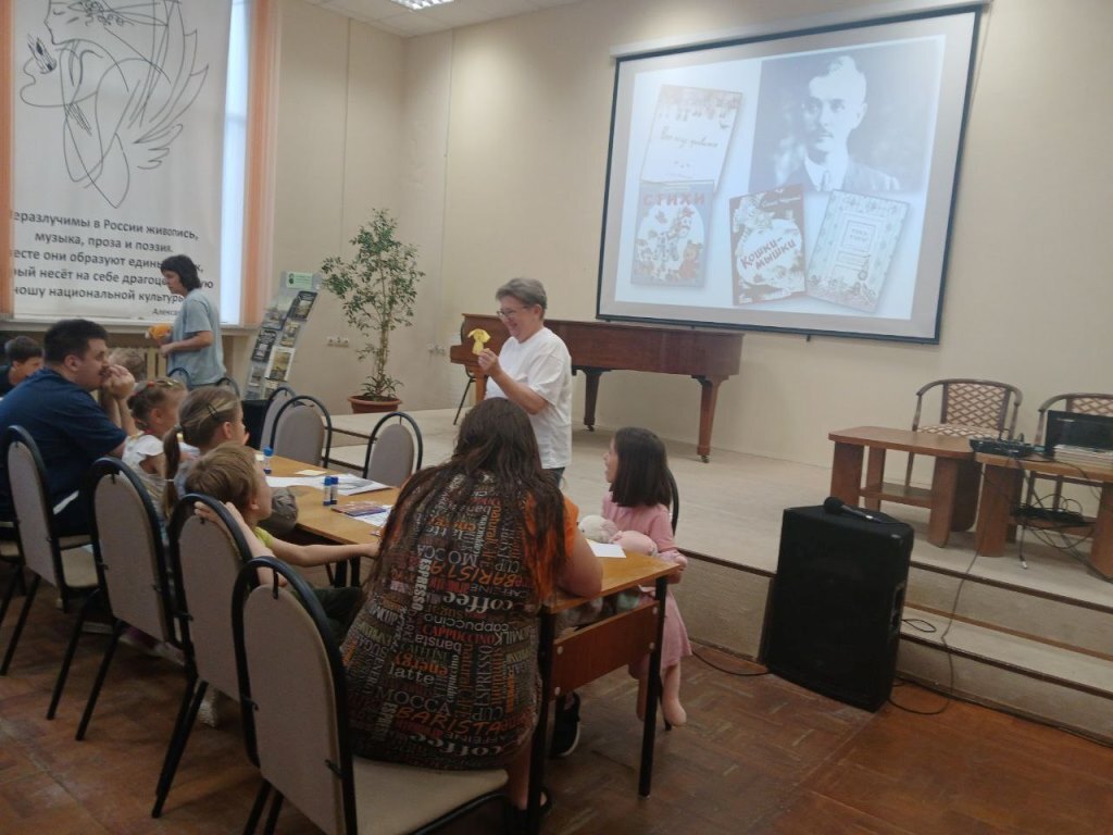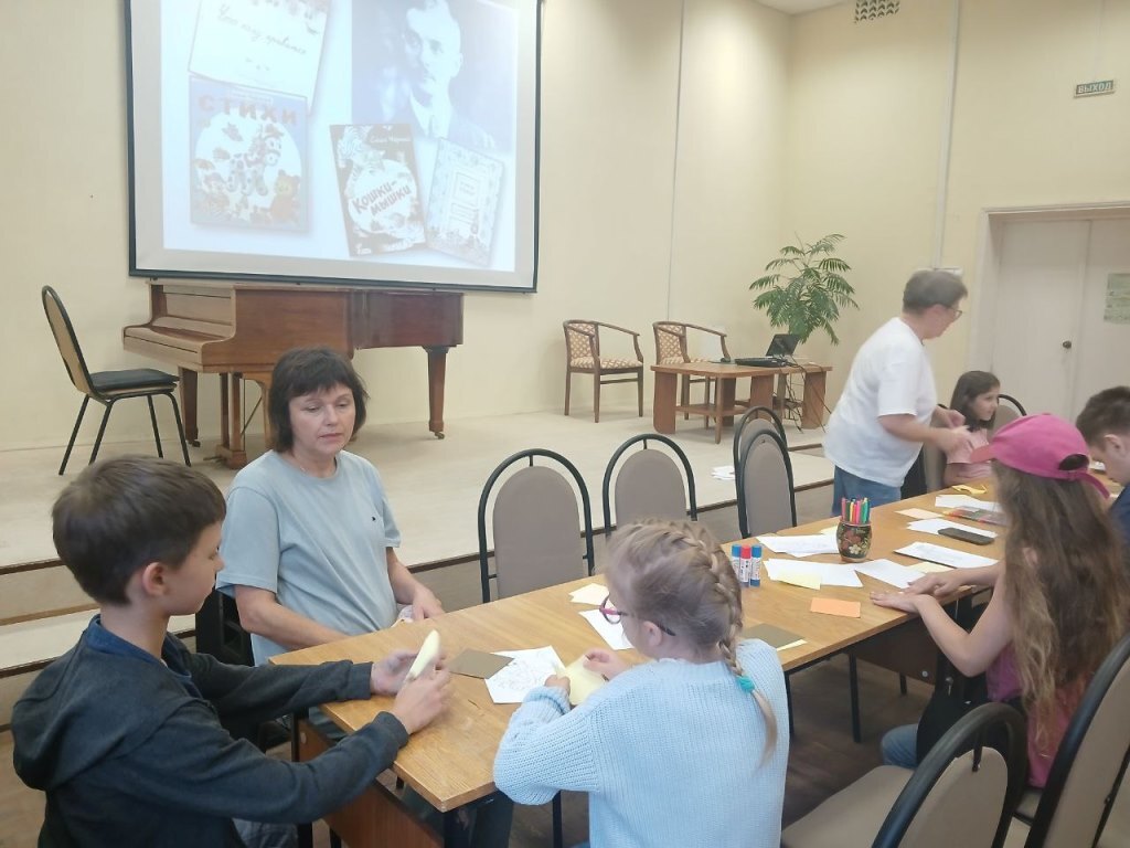 В программе Летнего читального зала «Остров доброго волшебника» было много стихов Саши Черного о детях, животных, игрушках, профессиях, временах года и т.д.; веселых загадок и игр, познавательных викторин и рисунков. Ребята также с удовольствием посмотрели мультфильм-экранизацию «Про девочку, которая нашла своего мишку», созданный на анимационной студии «Пилот» Александра Татарского. А в заключении программы состоялся мастер-класс по изготовлению веселой собачки, прообраза любимого поэтом фокстерьера Микки.