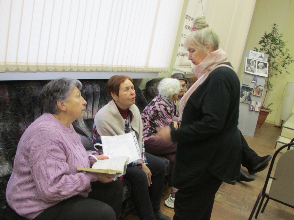 9 декабря состоялась очередная встреча в Центре досуга «Золотая осень» при библиотеке им. В. Маяковского. По традиции первой перед собравшимися выступила куратор от администрации города Г. И. Уланова, главный специалист отдела по социальной политике администрации Сарова. Она рассказала о новых схемах финансовых мошенников и возможностях противостояния им, а также напомнила, что не стоит сообщать по телефону незнакомцам свои персональные данные. Представительница городского Центра социального обслуживания населения рекламировала услуги, которые предоставляет это учреждение.