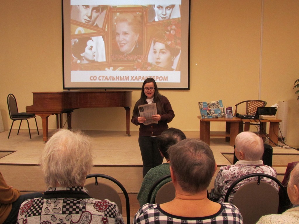 Затем прозвучала литературно-музыкальная программа «Красавица со стальным характером» о жизни и творчестве Элины Быстрицкой, народной артистки СССР и кавалера орденов «За заслуги перед Отечеством» трех степеней. Эта яркая актриса была самодостаточна, и в любой ситуации умела сохранить достоинство и королевский вид, стремилась и умела быть лидером, и снискала к себе заслуженное уважение и любовь. Во время программы были показаны лучшие фрагменты из любимых фильмов и телеспектаклей с ее участием, а также отрывки из интервью с известными актерами, хорошо знавшими Элину Авраамовну.