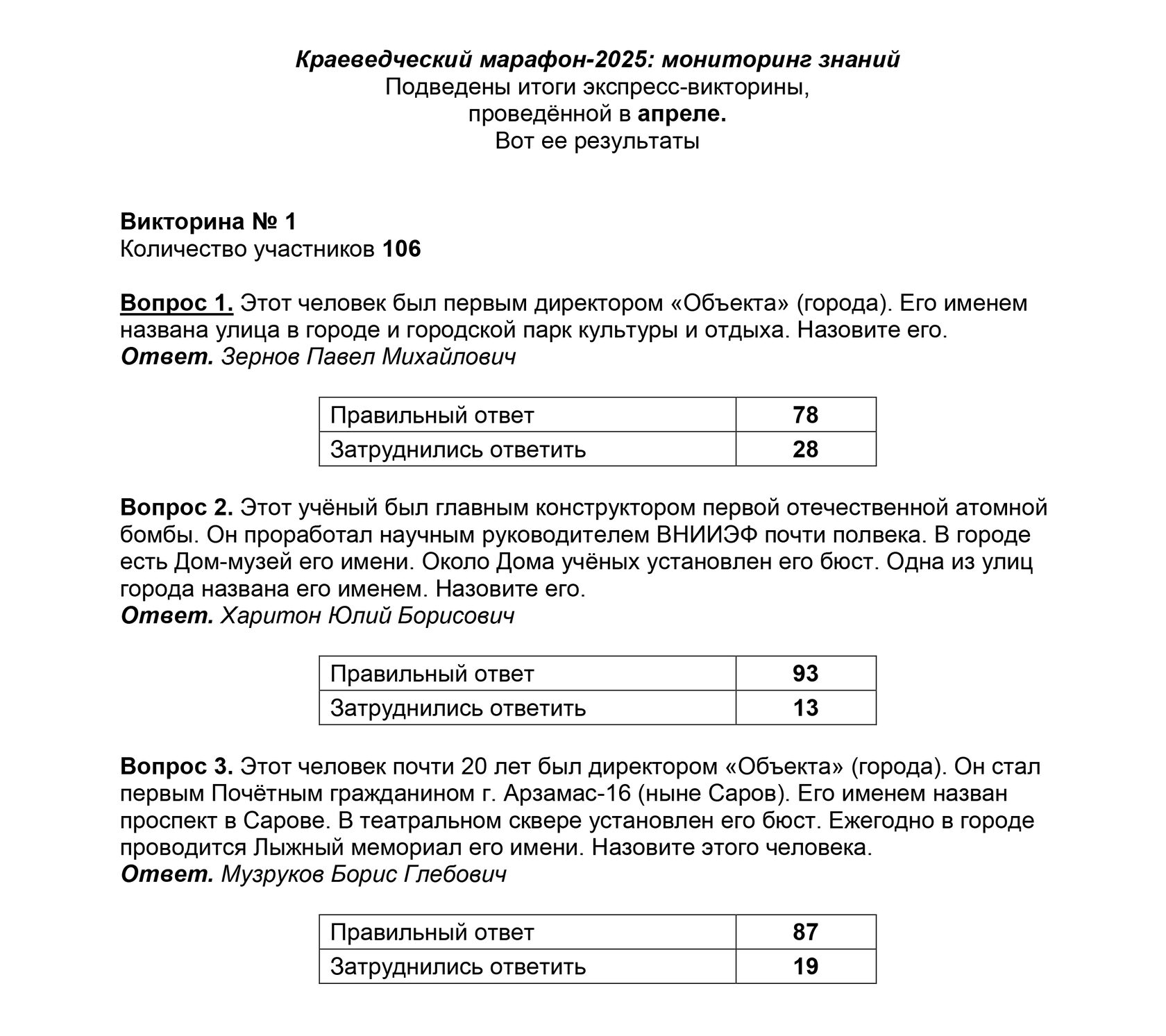 Подведены итоги экспресс-викторины, проведенной в апреле.