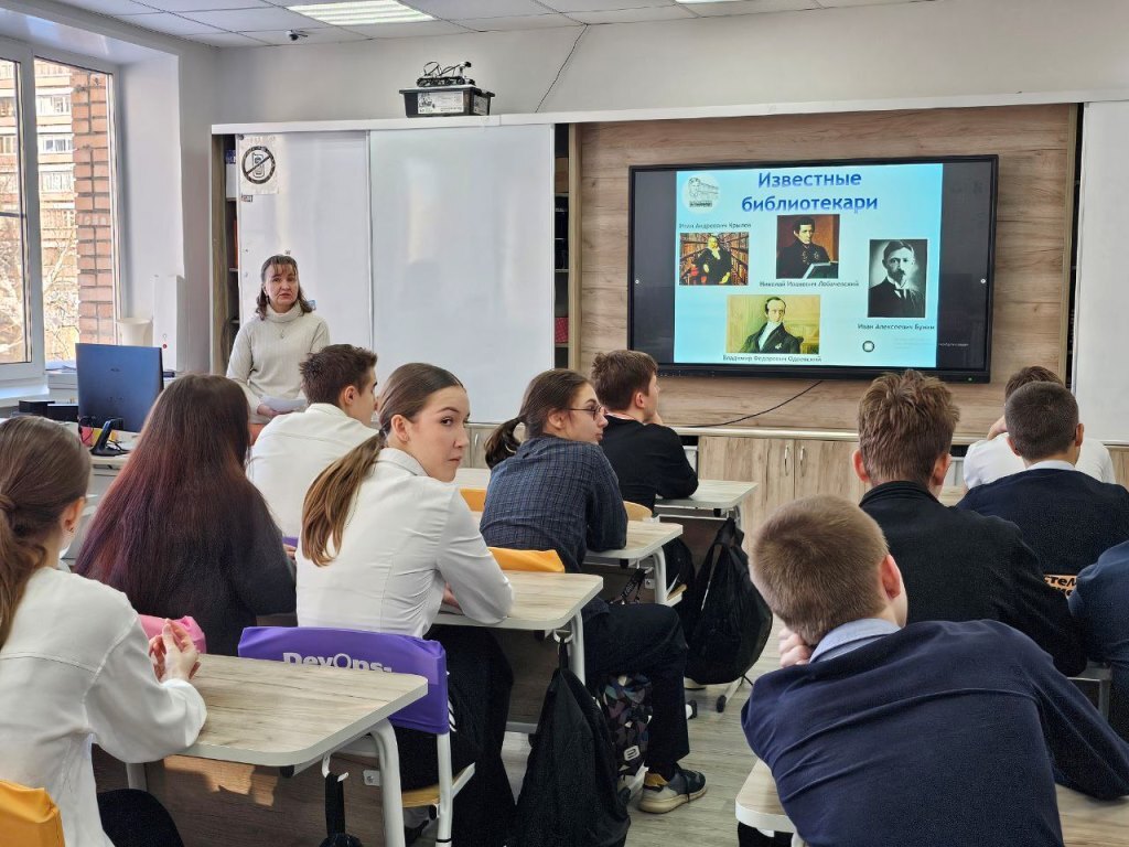 Цель встречи — познакомить молодых людей с профессией библиотекаря, раскрыть её историю и показать, насколько современная библиотека — это динамичное и творческое пространство. А современный библиотекарь – не просто хранитель книг, а настоящий творец и новатор. Вместе с заведующей отделом обслуживания ребята заглянули за кулисы этой древней профессии и узнали, чем же на самом деле занимаются амбассадоры чтения.