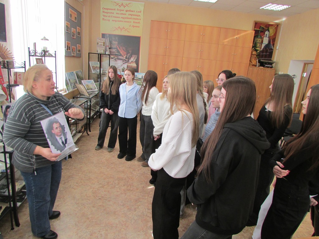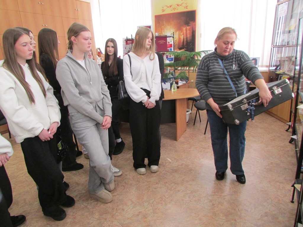 Музей книги библиотеки им. В. Маяковского наполнился молодой энергией: к нам заглянули студенты первого курса Саровского политехнического техникума им. Б. Г. Музрукова на тематическую экскурсию.