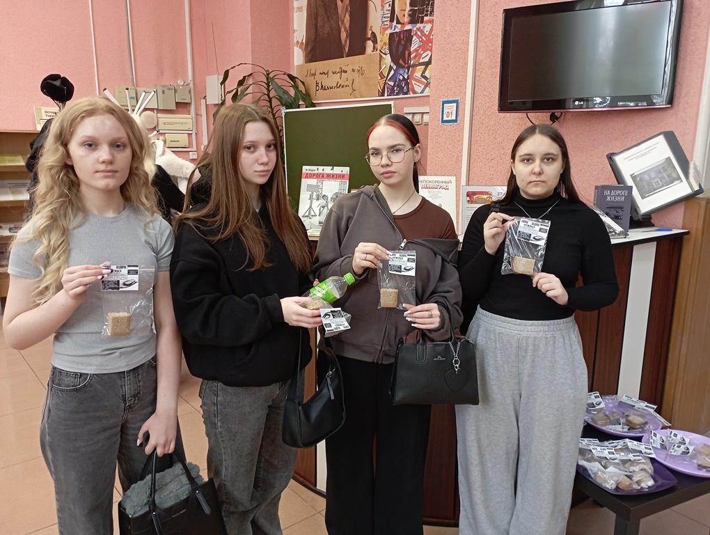 Особой эмоциональной глубины событию добавил рассказ библиотекарей и книжная выставка «Хлеб той зимы». На ней были представлены книги о блокаде, фотографии, журнальные статьи с копиями дневников и документов, личных вещей блокадников, а также образцы хлебных карточек. Выставка наглядно показала, как хлеб из простого продукта превратился в главную ценность, ради которой люди совершали ежедневные подвиги.