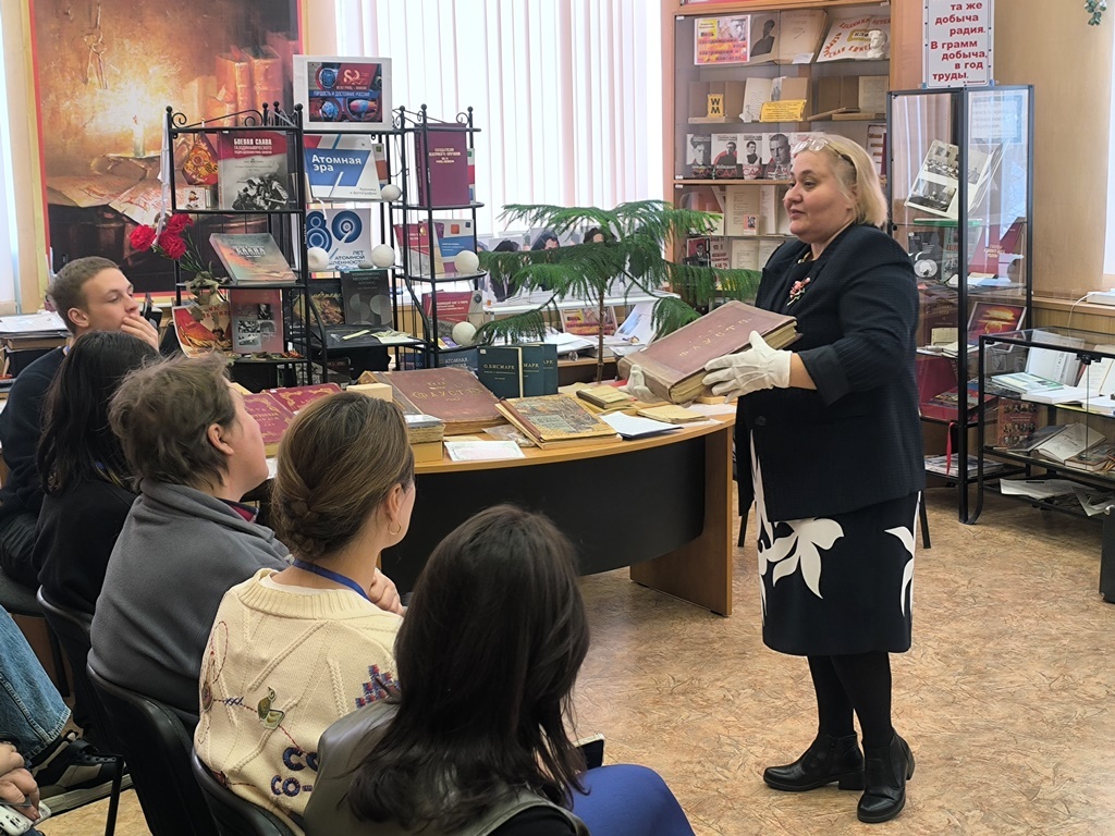 И напоследок… Для наших гостей музей книги стал настоящим открытием. Здесь развернута выставка «След в истории. Автографы творцов атомного века». На ней - книги с автографами, пометками и пожеланиями тех, кто создавал отечественное атомное оружие. За 80 лет наша библиотека принимала выдающихся учёных - и многие из них оставили здесь свой след. Перед глазами гостей предстали 400‑летняя книга, издания в пергаментных и деревянных переплётах, старинная Библия в кожаном переплёте. Участники рассмотрели миниатюры, фолианты, книги с застёжками - каждый экспонат был уникален. Шедевры Данте, Шекспира и Гёте стали финальным аккордом книжного путешествия, оставив неизгладимое впечатление.