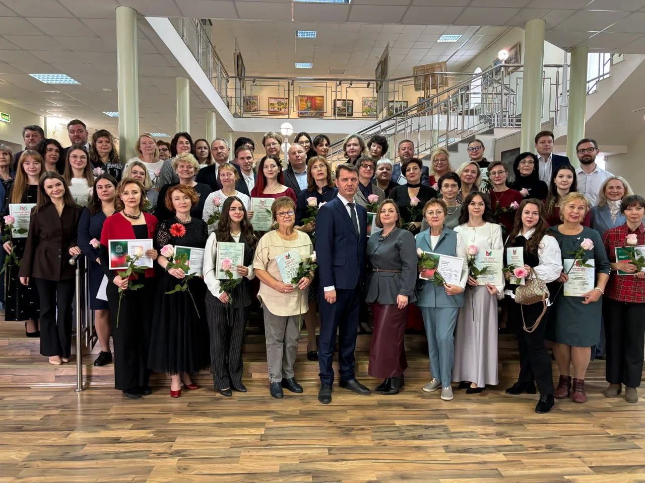 Педагогических работников приветствовали Глава города Сарова Алексей Сафонов и директор Департамента культуры Ксения Якунчикова. За плодотворную педагогическую и творческую деятельность, большой вклад в обучение и воспитание подрастающего поколения города Сарова и в связи с Днем учителя Почетным грамотами и благодарственными письмами Администрации города Сарова и Департамента культуры были награждены 45 преподавателей муниципальных бюджетных учреждений дополнительного образования в области культуры.