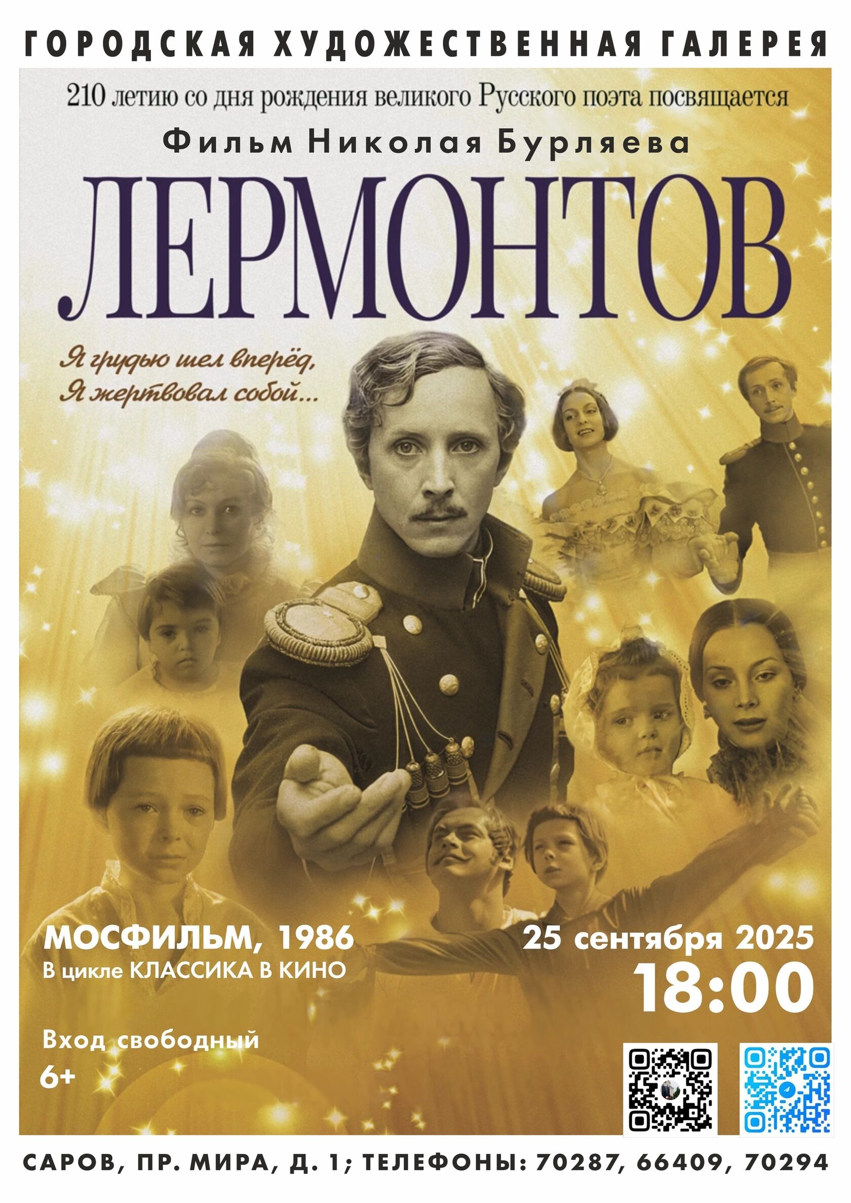 25 сентября в 18:00, приглашаем вас в Художественную галерею на кинопоказ художественного фильма «Лермонтов» в рамках программы «КИНОКАДР: лучшие фильмы в объективе кинокамеры: Классика в кино».