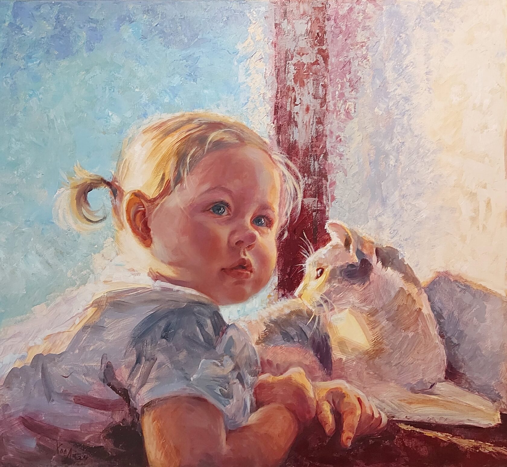 На фото: картина «Любимая игрушка» Лилии Холодовой, представленная сейчас на выставке «Художники Сарова-2025» в Художественной галерее