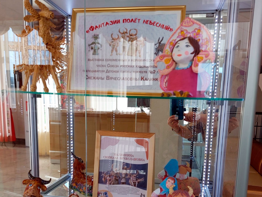 Персональная выставка настоящего мастера по созданию художественной керамики и изделий из соломки преподавателя, председателя методобъединения Ремесленно-художественного отделения Детской школы искусств №2 Калинкиной Снежаны Вячеславовны открыта в витринах фойе Центра культуры г.о.г. Первомайск.