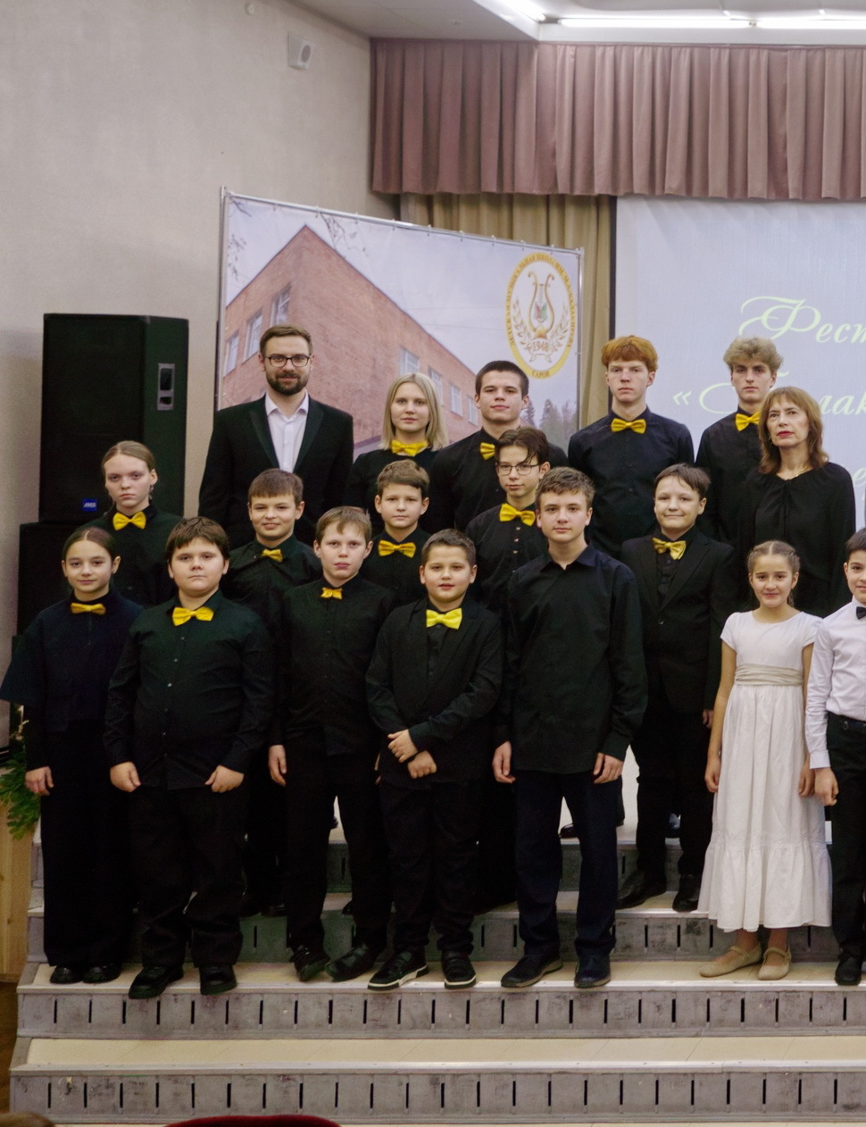 Погружение в великолепную музыку Г.В. Свиридова, пронизанную русским народным духом, началось с известнейших фрагментов музыкальных иллюстраций к повести А.С. Пушкина «Метель»: «Вальс» в проникновенном исполнении оркестра русских народных инструментов (рук. С.М. Разгуляев) и «Романс» в выразительной игре трио преподавателей: Юлия Синицкая (флейта), Ольга Радаева (виолончель), Яна Командина (фортепиано). Два фрагмента из вокальной поэмы «Отчалившая Русь» на стихи С.А. Есенина, которому в 2025 году исполнилось 130 лет со дня рождения, прозвучали в исполнении Михаила Бурцева, который сумел передать в своём пении невероятно глубокие чувства любви к России. После мощного колокольного звучания зал услышал другой облик Свиридова – лирика: «Грустная песенка» в фортепианном исполнении Марии Новаевой (преп. Н.В. Тимофеевская) прозвучала трепетно и ласково.