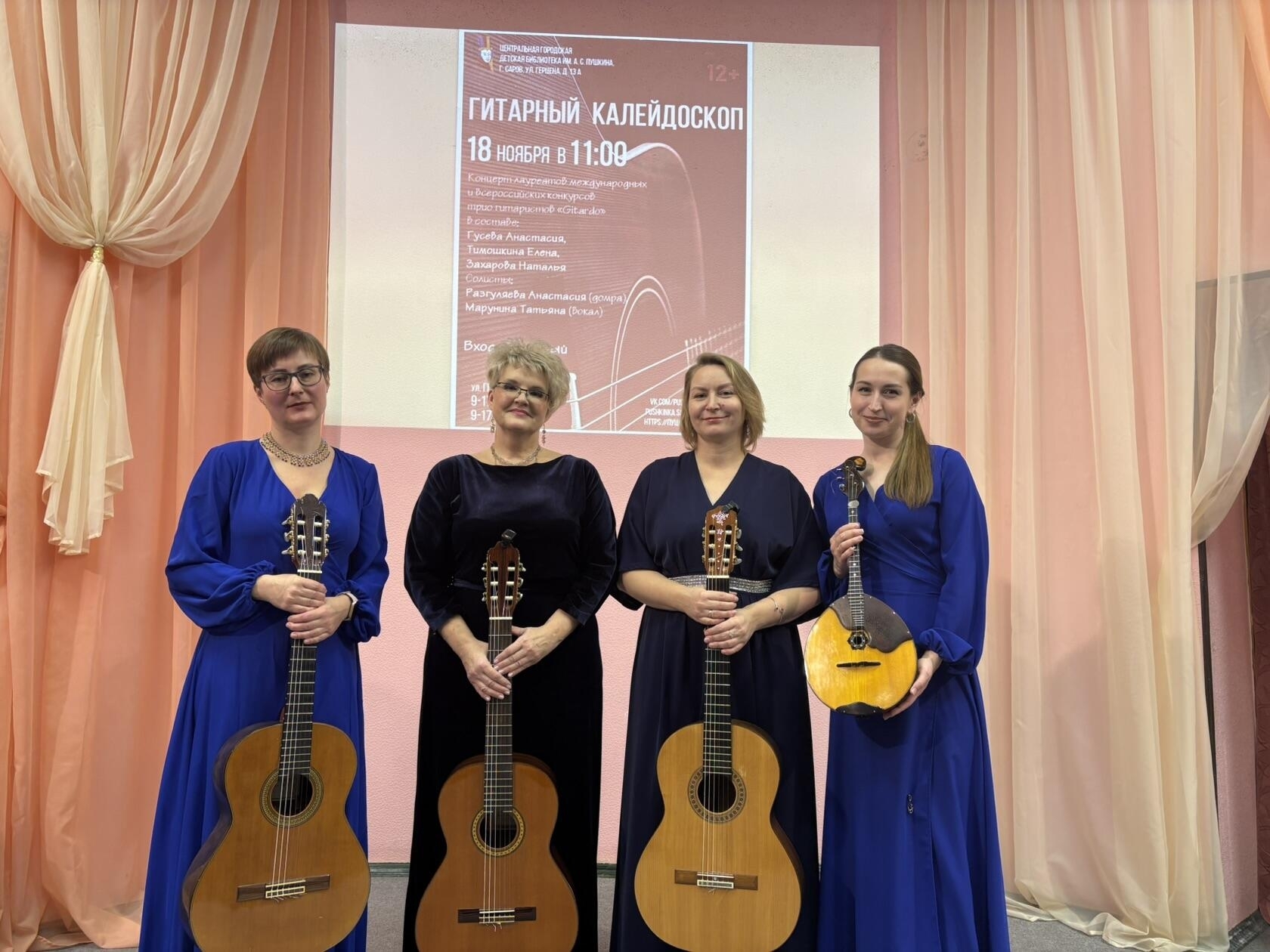 18 ноября в уютном зале Пушкинки царила особая атмосфера — атмосфера праздника, музыки и добрых воспоминаний. Здесь состоялся концерт «Гитарный калейдоскоп».