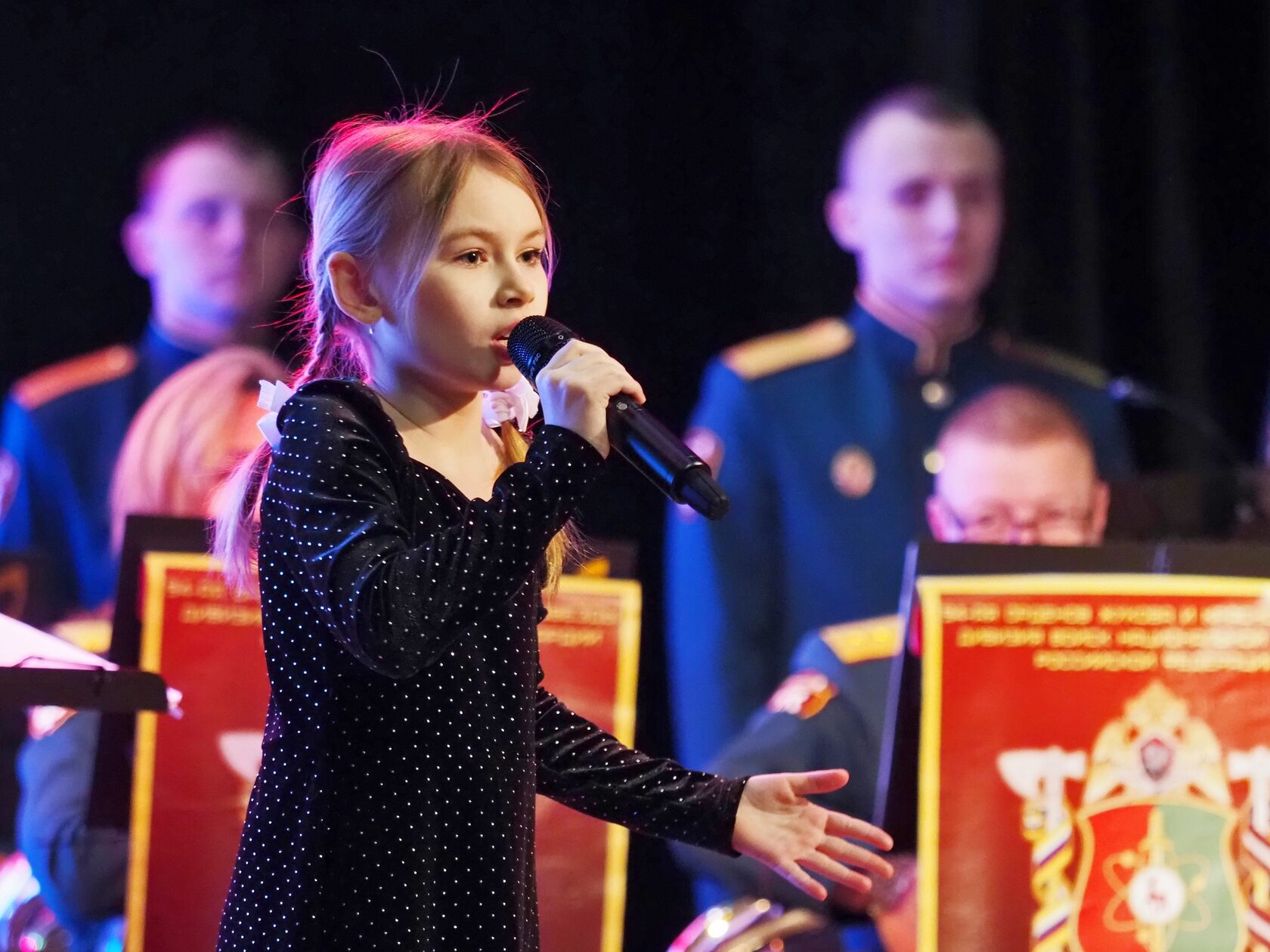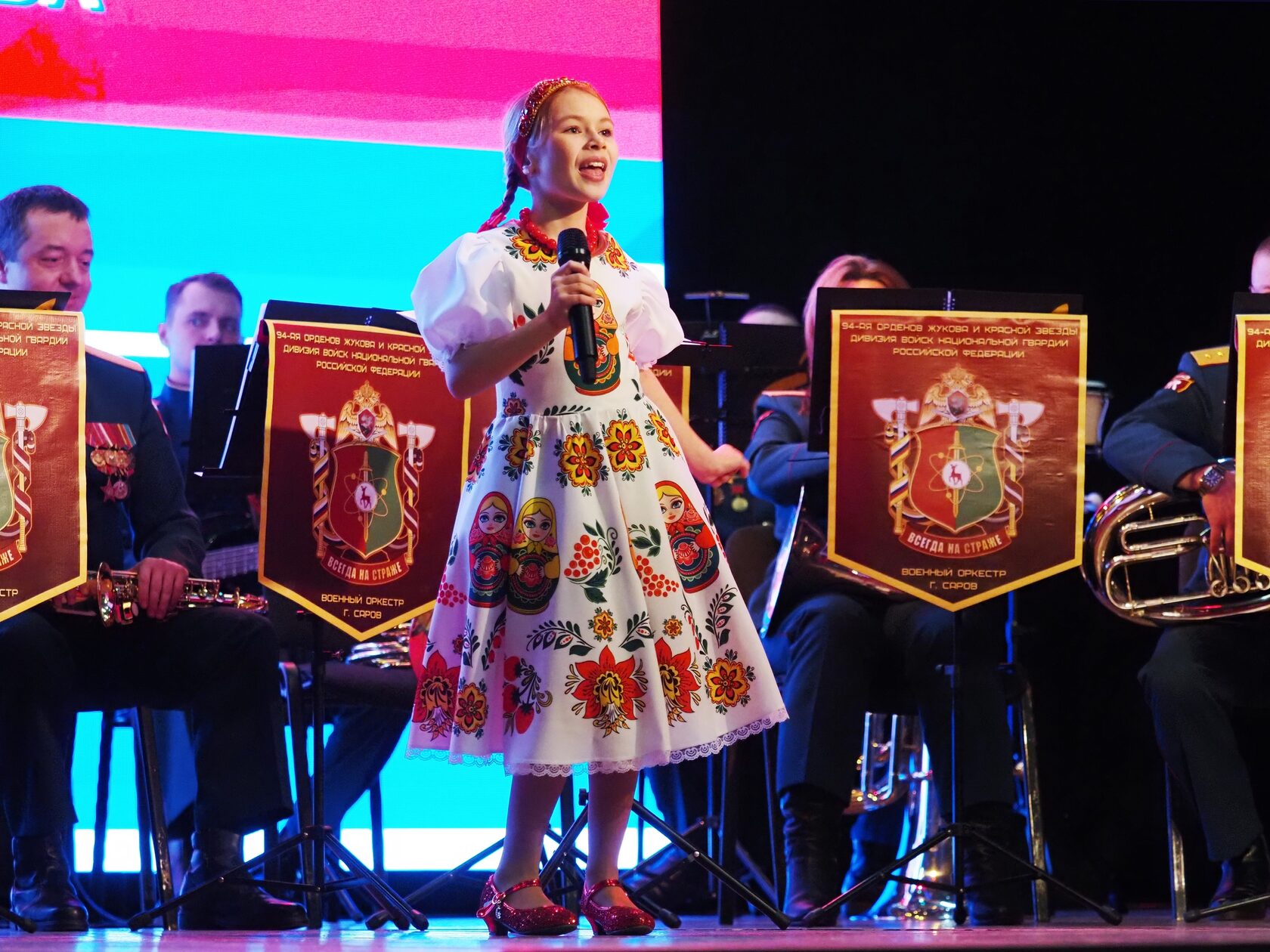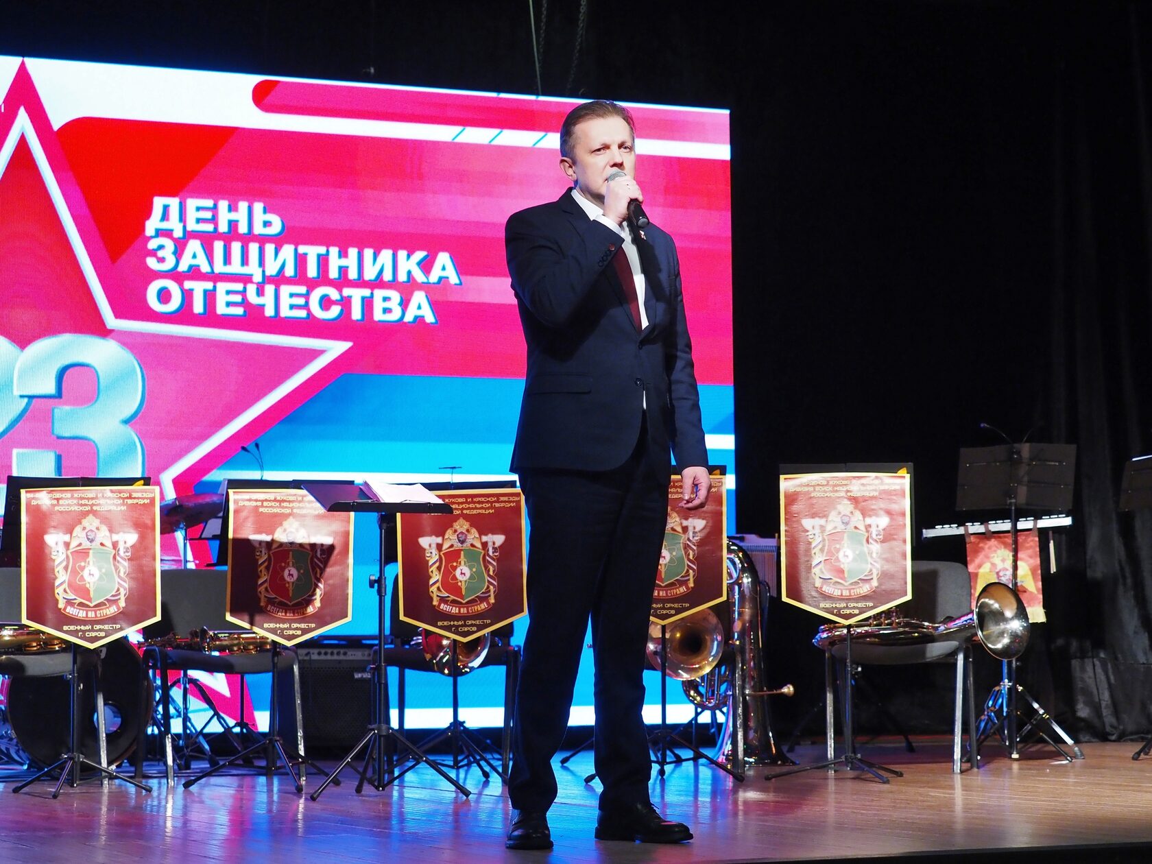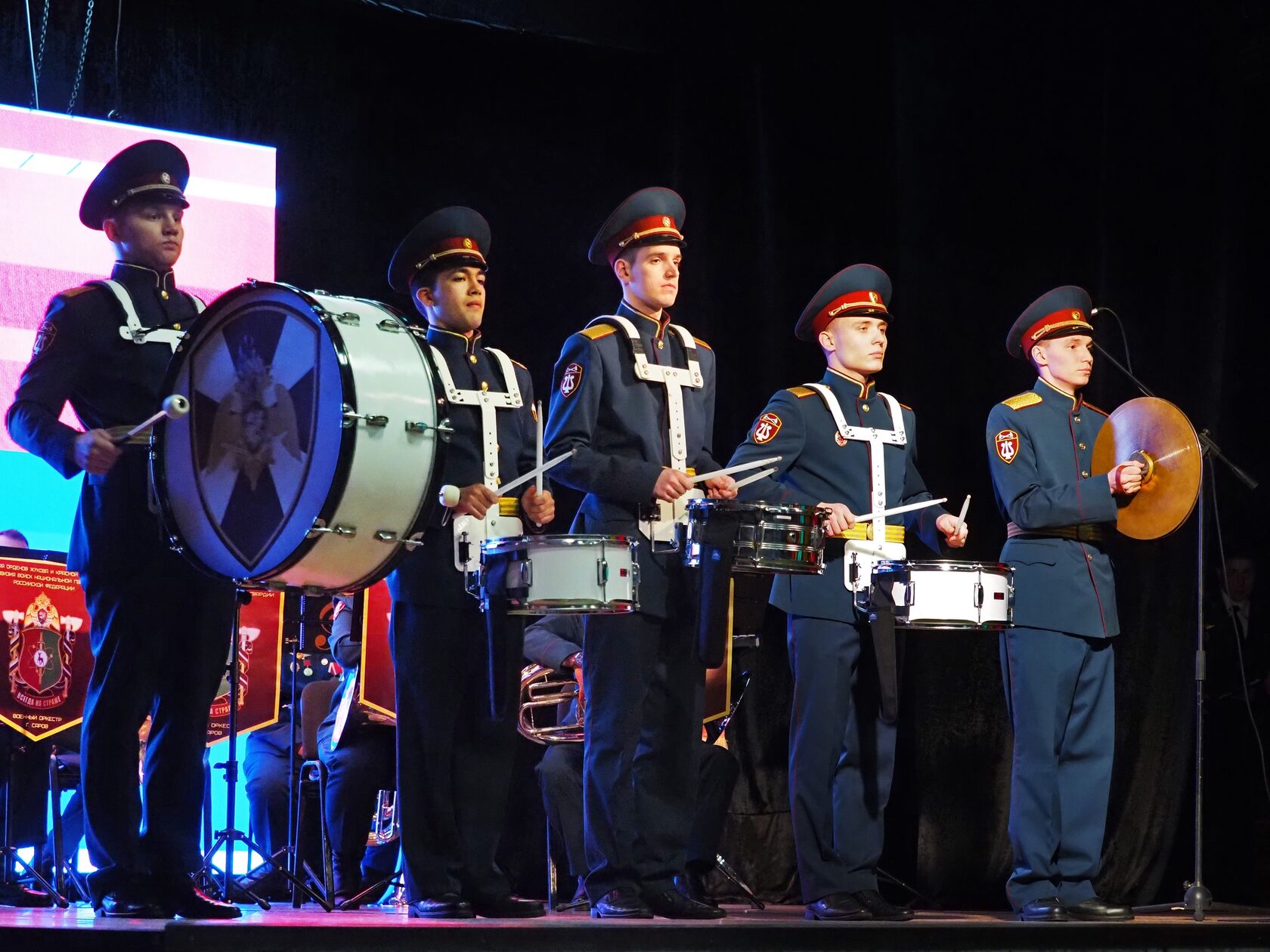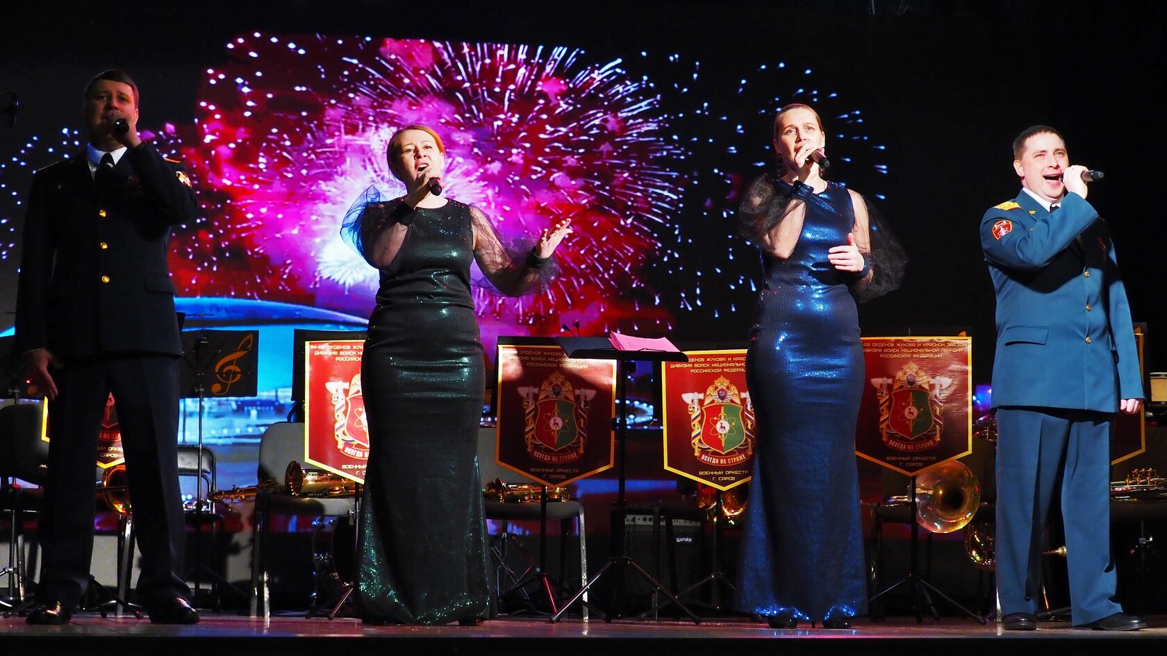 Главным музыкальным событием вечера стало выступление военно-духового оркестра Саровской дивизии войск национальной гвардии Российской Федерации под руководством Александра Евграфова. В исполнении оркестра прозвучали торжественные марши, знакомые с детства военные песни и классические произведения. Мастерство музыкантов и проникновенное звучание духовых инструментов задали праздничный тон всему вечеру — каждое выступление сопровождалось бурными овациями.