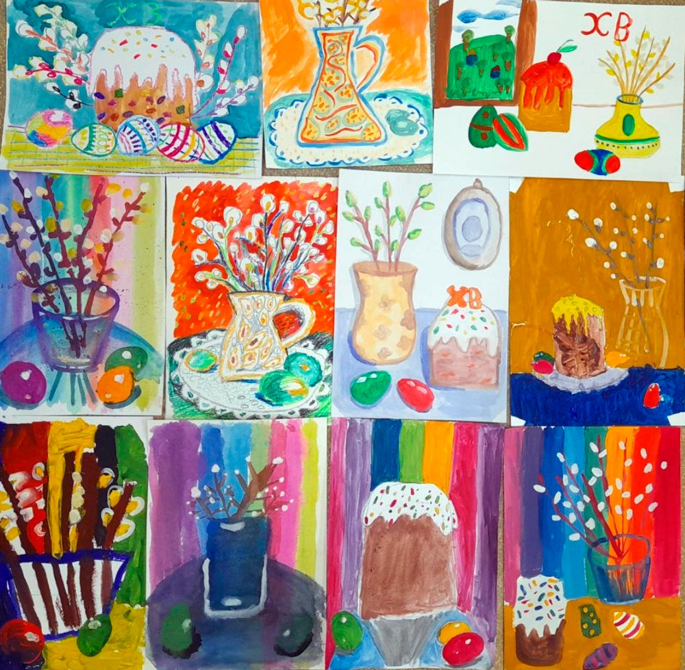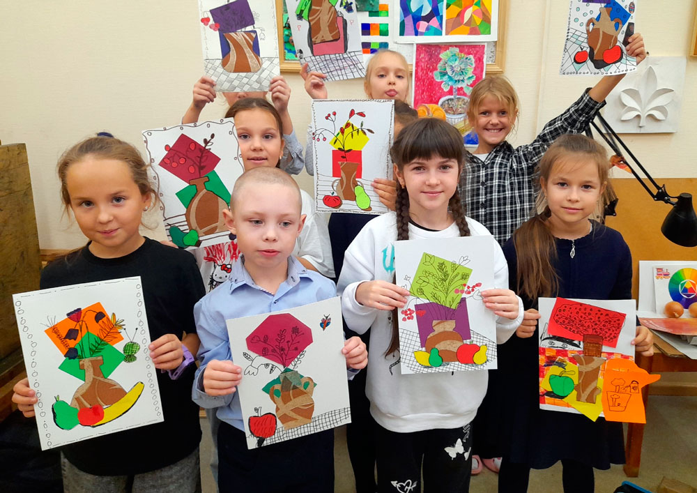 На занятиях ребята приобщаются к культурному наследию своего народа. Русский изразец, пряник, разновидности глиняной игрушки, резьба, роспись по дереву дали основу для авторских вариантов в работах юных художников.
