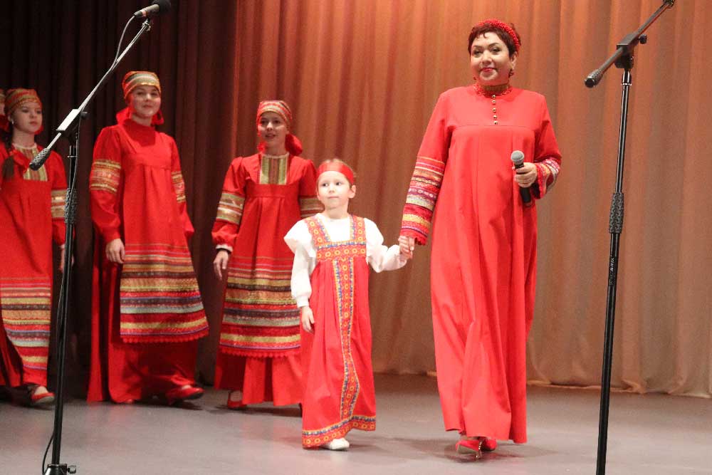 Младшая группа Образцового ансамбля народной песни «Горница» под руководством Оськиной И.З. порадовали своих мам шуточной песней, а старшая группа не только справилась с глубоко патриотической песней, но и, благодаря педагогу-хореографу Рожковой О.Н., порадовала зрителей танцем.