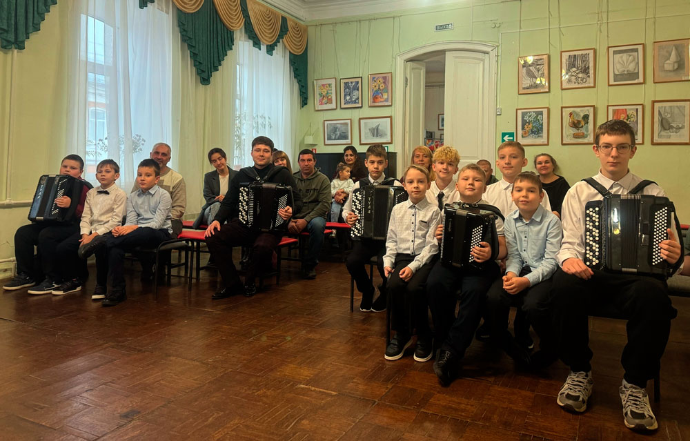 В концерте приняли участие баянисты и аккордеонисты обеих школ. Ребята продемонстрировали приобретённые умения, исполнив разнообразные музыкальные произведения. Юные музыканты обменялись опытом и с интересом послушали выступления друг друга.