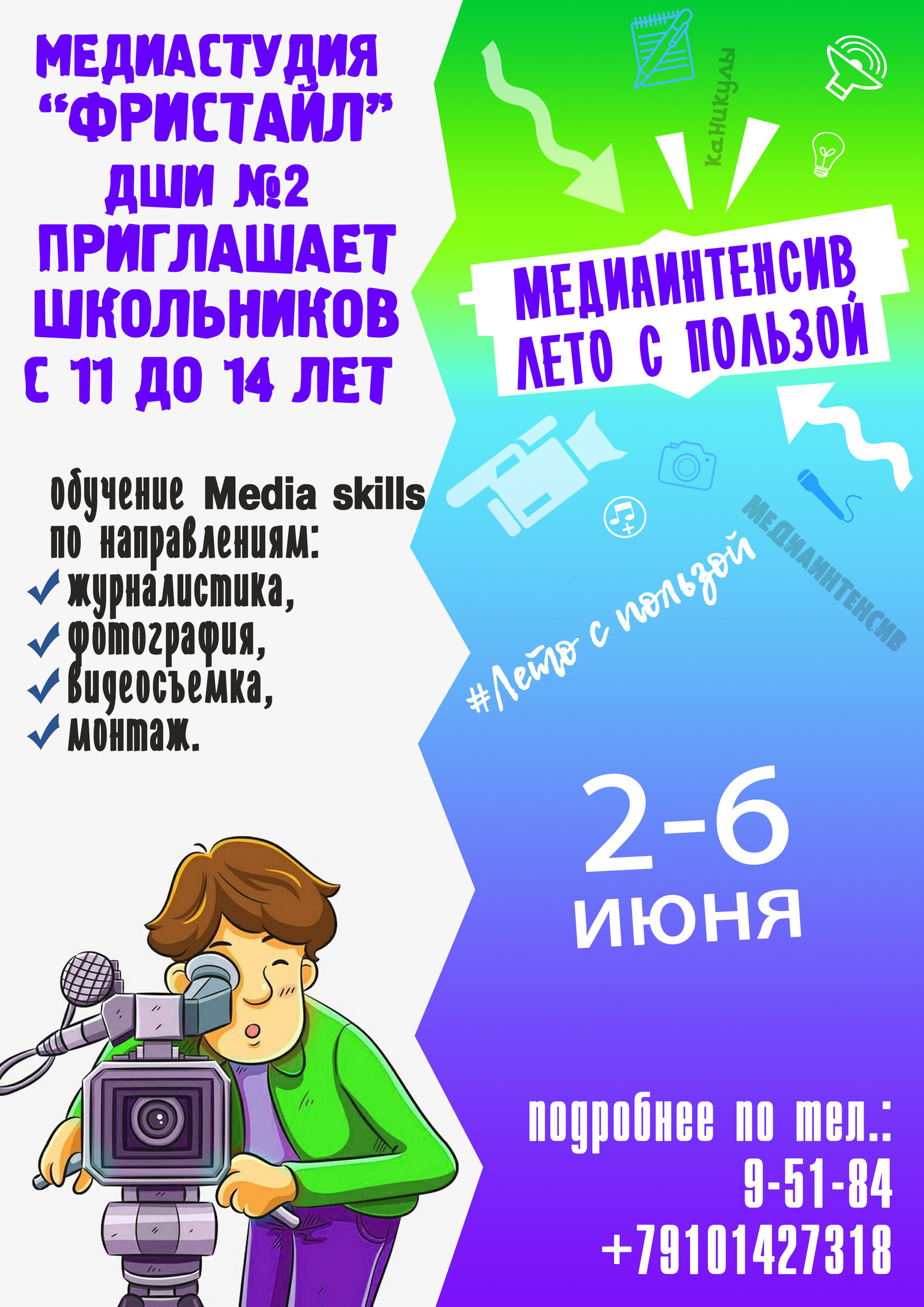 Финальным событием этого уходящего учебного года вновь станет медиаинтенсив «Лето с пользой». Как всегда он будет насыщен новыми знакомствами, медиаоткрытиями и съёмками. Какой сюжет будут снимать ребята – пока секрет. Но, однозначно, время ребята проведут с интересом, весело и активно, и по итогу представят родителям премьеру видеоролика.