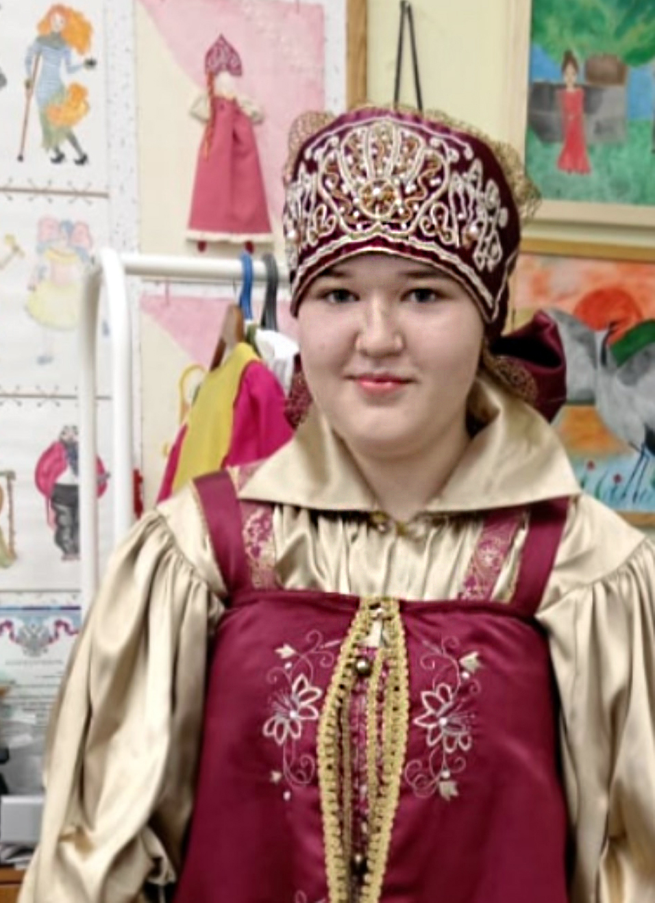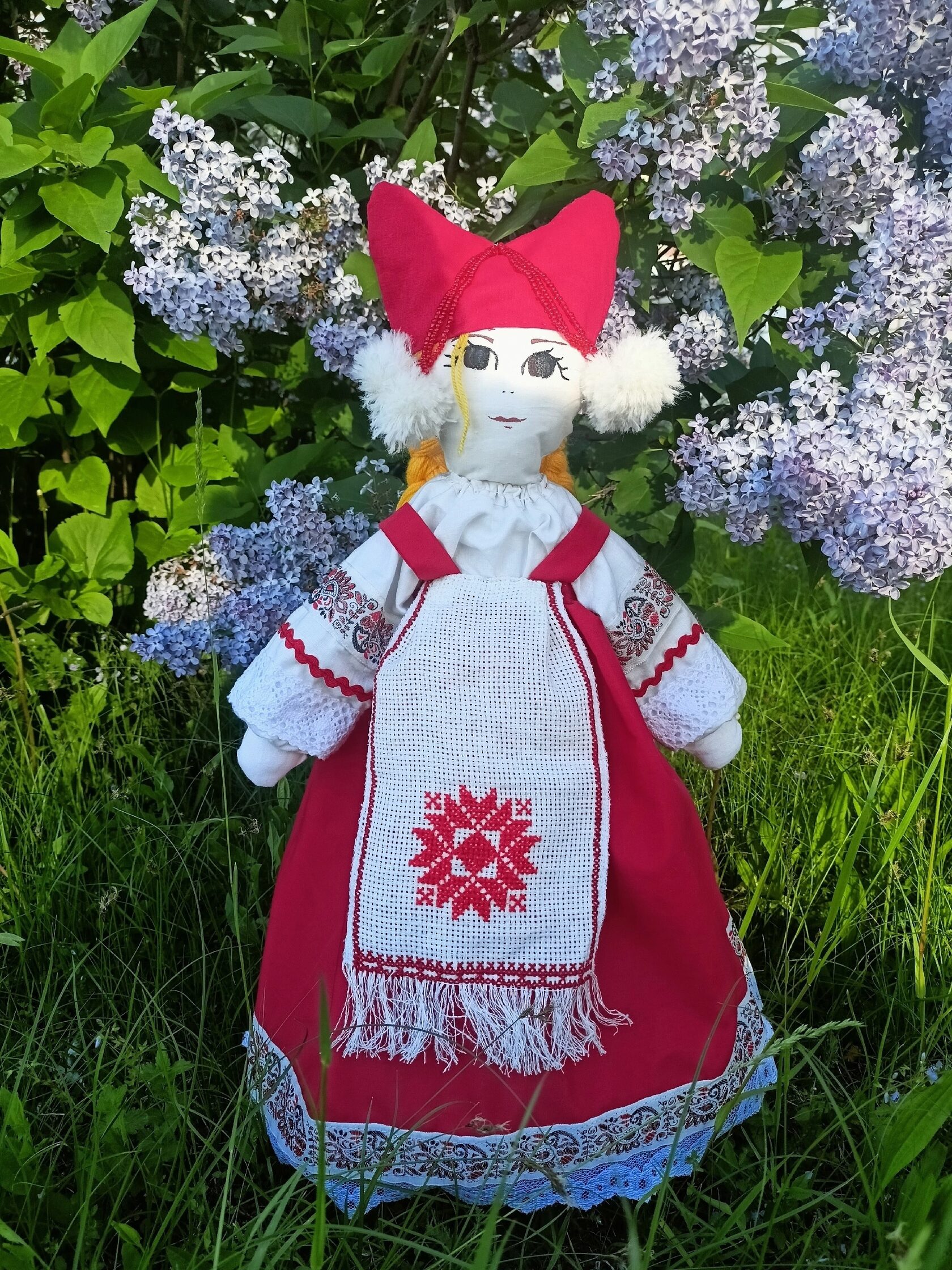 Кукла в русском народном костюме принесла ей Диплом победителя 2 степени. Кукла изготовлена из различных текстильных материалов в большинстве своём в ручную, вышиты некоторые элементы одежды куклы в технике «крест». Образ полностью продуман молодым автором. Ирина учится в классе Бодряшкиной Е.Н., мастер производственного обучения Колтеева А.Ю. в МБУДО ДШИ №2 на филиале по ул. Московская, д. 36.