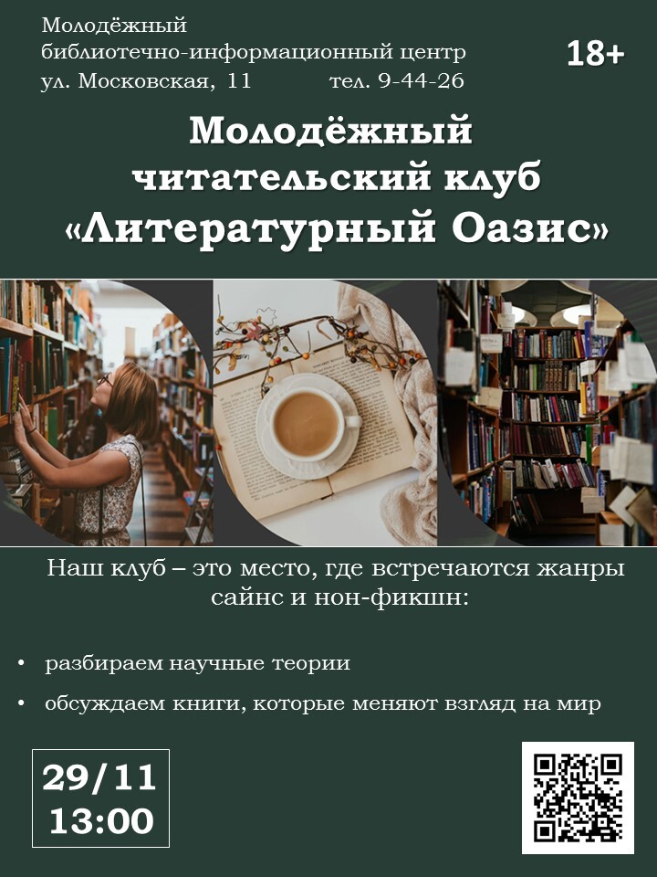 В Молодежном библиотечно-информационном центре 29 ноября в 13 часов