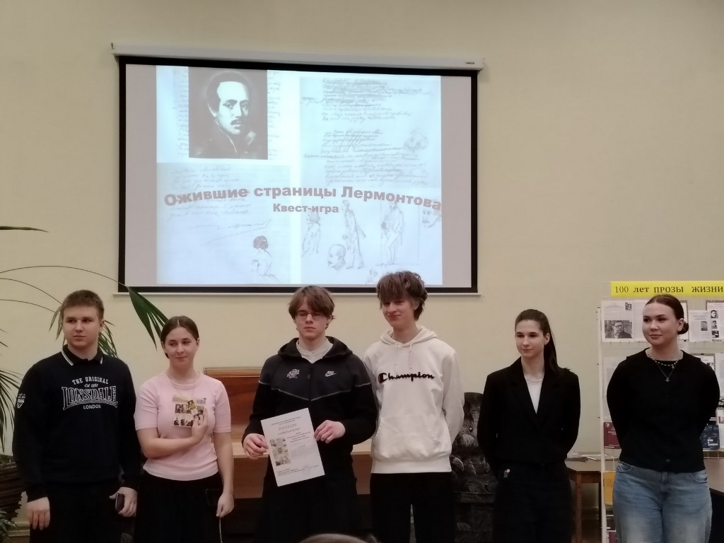 18 ноября учащиеся 10-х классов Школы № 14 были приглашены в библиотеку им. В. Маяковского на игровую программу-квест по творчеству Михаила Юрьевича Лермонтова в рамках программы «Пушкинская карта».