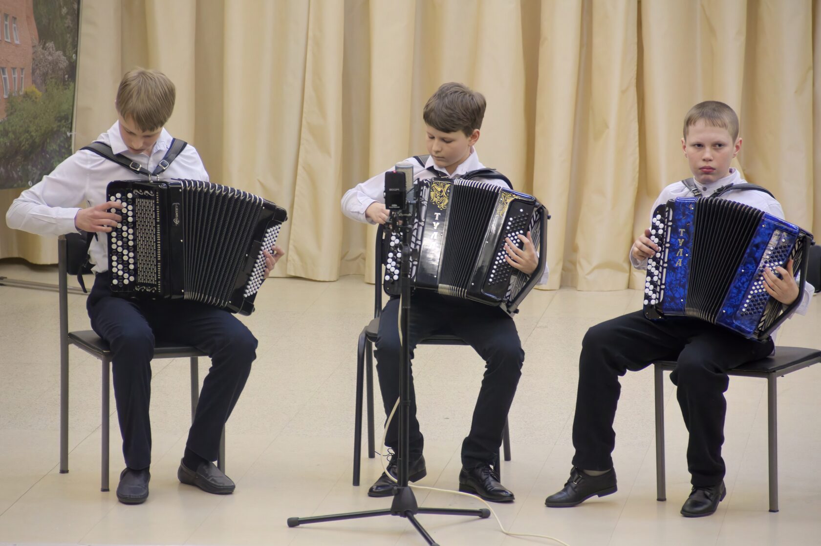 - Трио баянистов: Юдаев Кузьма, Круглов Илья, Новаев Илья (преп. Н.В.Махорт)