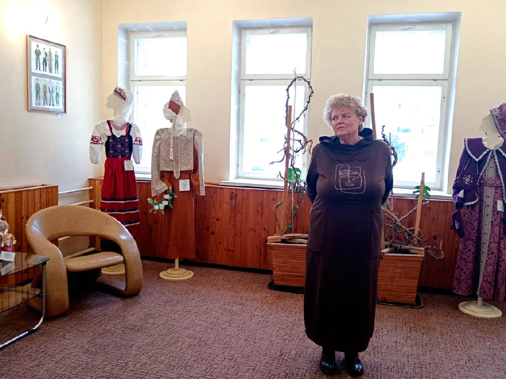 На выставке представлены работы учениц отделения «Дизайн одежды и ткани» разных выпусков: композиции костюма, авторские костюмы, сшитые девочками; текстильные куклы.