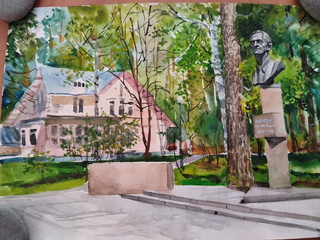 Это не просто городские пейзажи, а художественные посвящения местам, связанным с именами «отцов‑основателей» Сарова. Каждая работа пропитана гордостью за нашу историю. В лёгких акварелях оживает память о людях, чьи имена носят наши улицы и чьи свершения бережно хранит каждый уголок Сарова — от памятников и бюстов до легендарного танка у Дворца детского творчества. Мы гордимся тем, что живём на улицах, где жили и работали создатели ядерного щита Родины.
