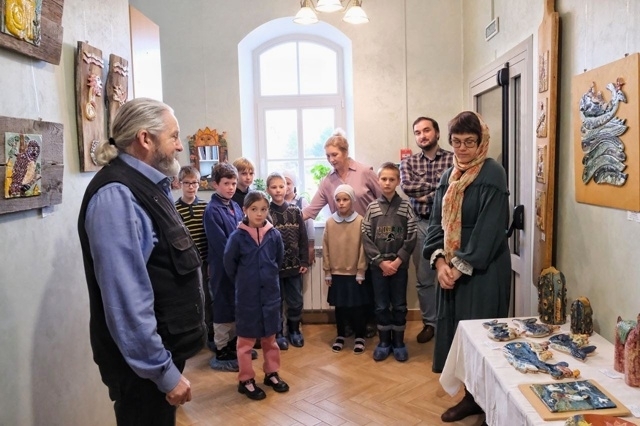 Открытие выставки было многолюдным, в нем приняли участие директор школы художественных ремесел Владимир Туляков, куратор по образованию и катехизации Дивеевского благочиния Екатерина Тулякова, педагоги и учащиеся школы.
