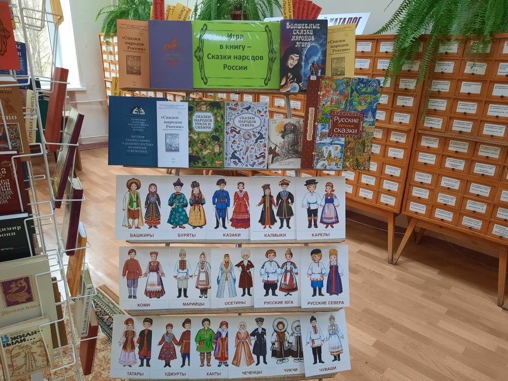 В рамках выставки вы также сможете воспользоваться интерактивными модулями Библиотрансформера: информационным буклетом и игрой «Сказки народов России».
