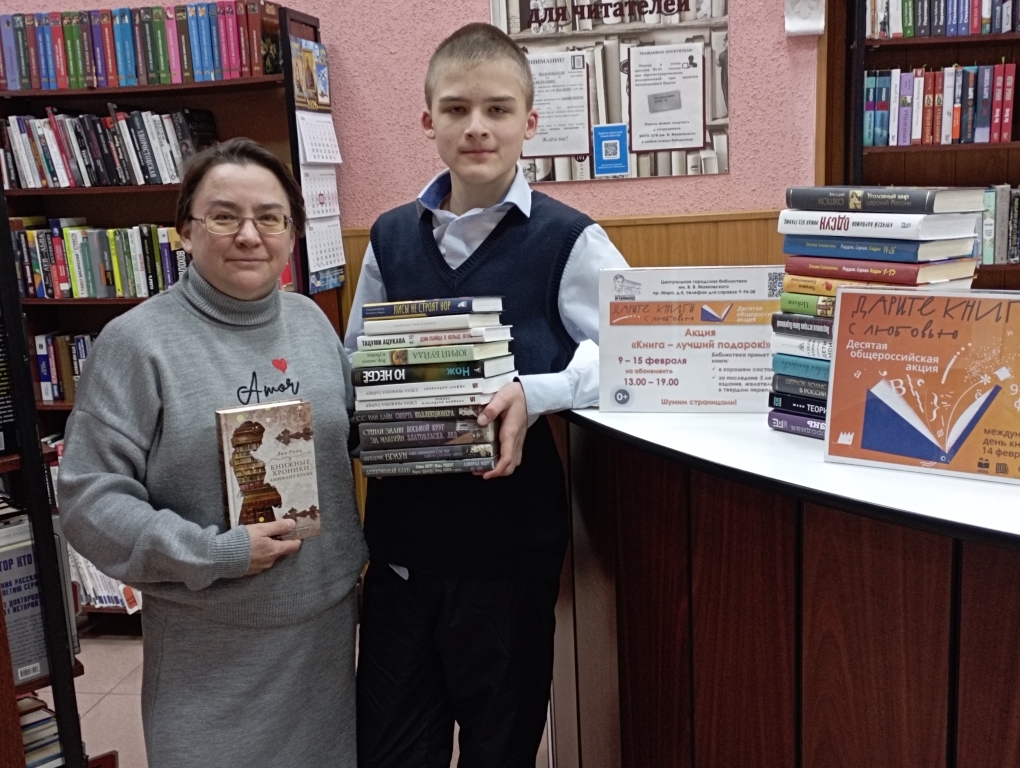 Завершилась десятая юбилейная общероссийская акция «Дарите книги с любовью», приуроченная к Международному дню книгодарения. Активно поддержала всероссийский марафон добра и библиотека имени В. Маяковского. В течение недели с 9 по 15 февраля специалисты отдела обслуживания проводили литературные игры, викторины и благотворительную акцию под названием «Книга – лучший подарок!».