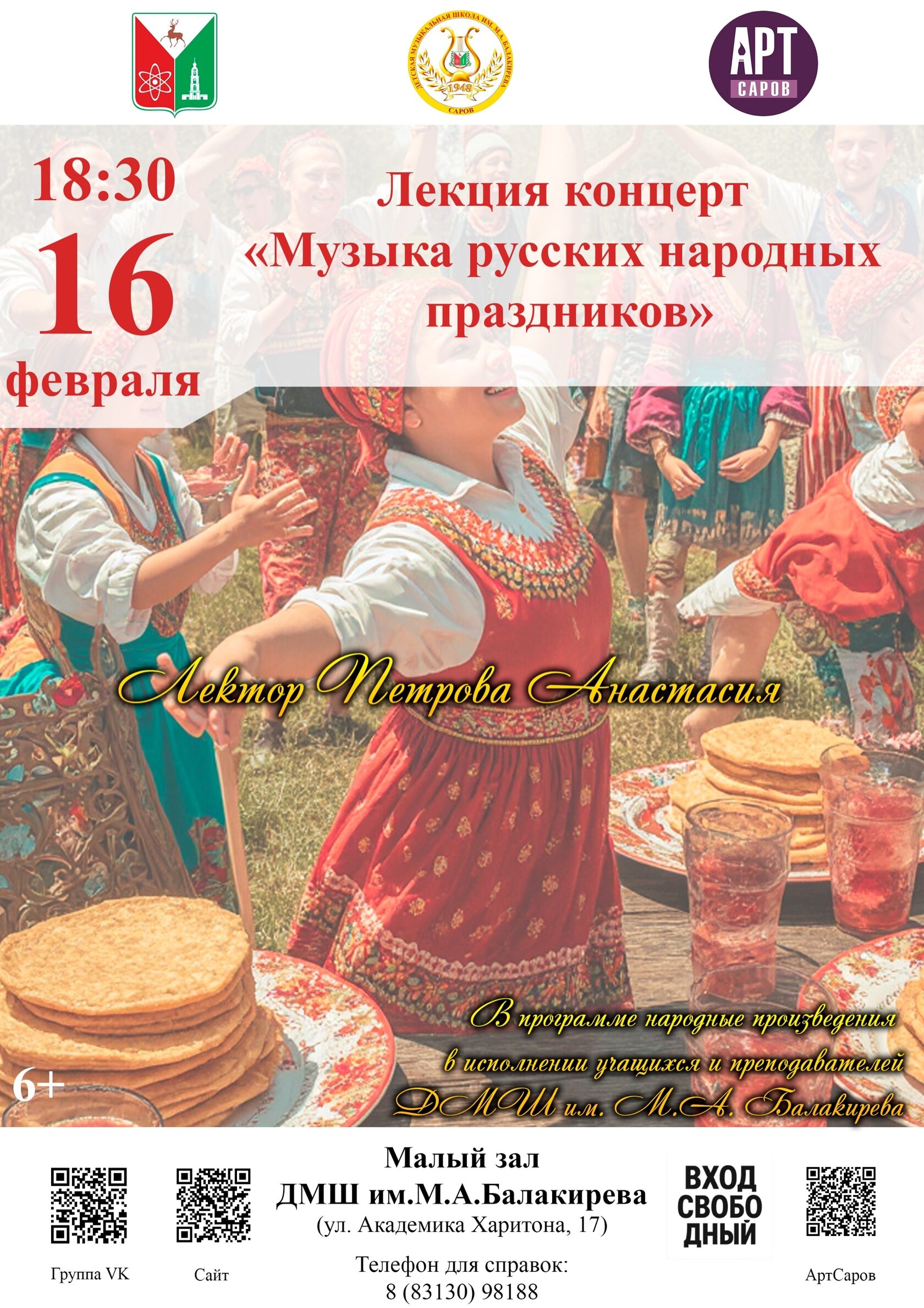 16 февраля в 18:30 в Малом зале ДМШ им.М.А.Балакирева состоится Лекция-концерт «Музыка русских народных праздников»!