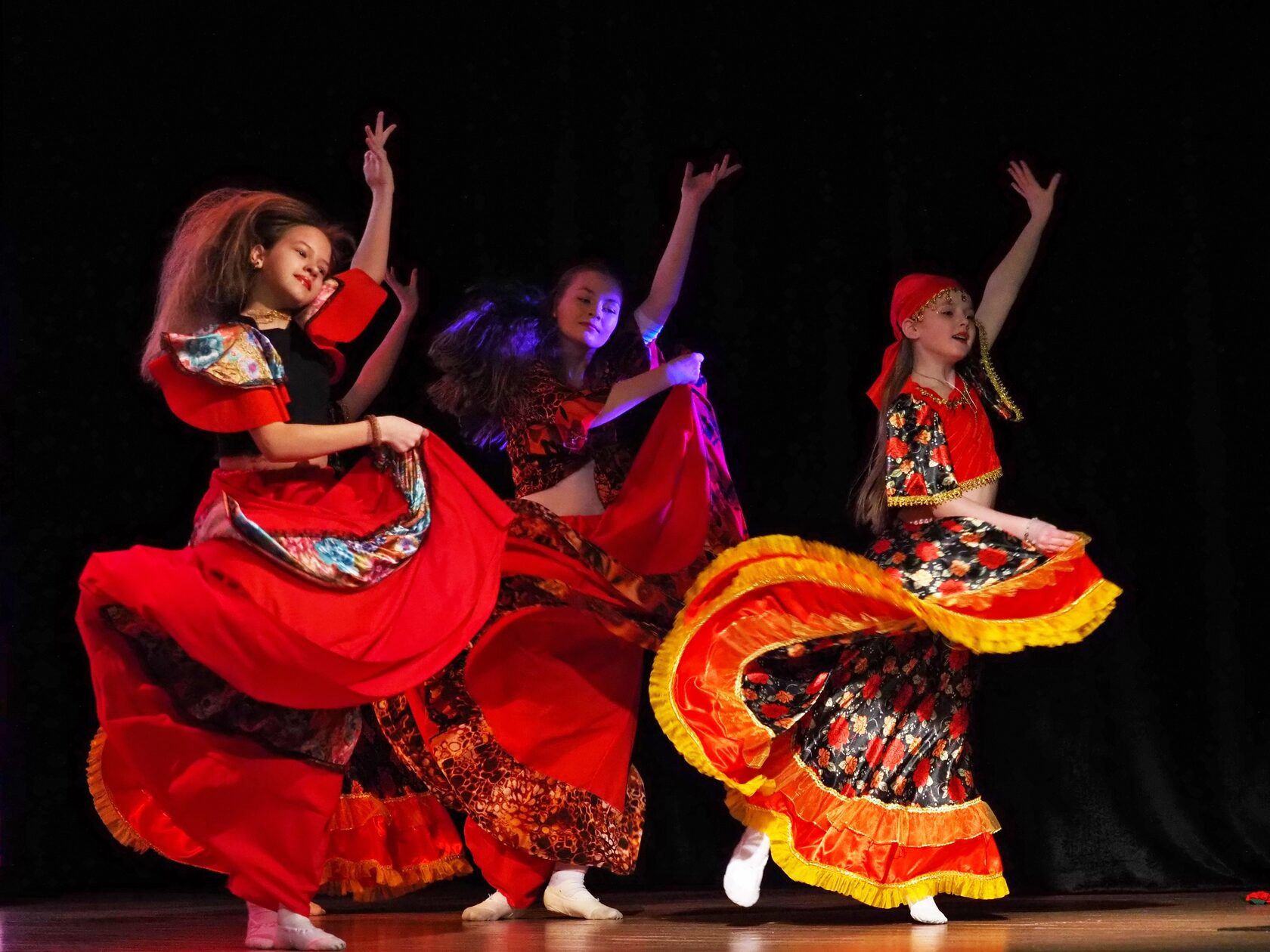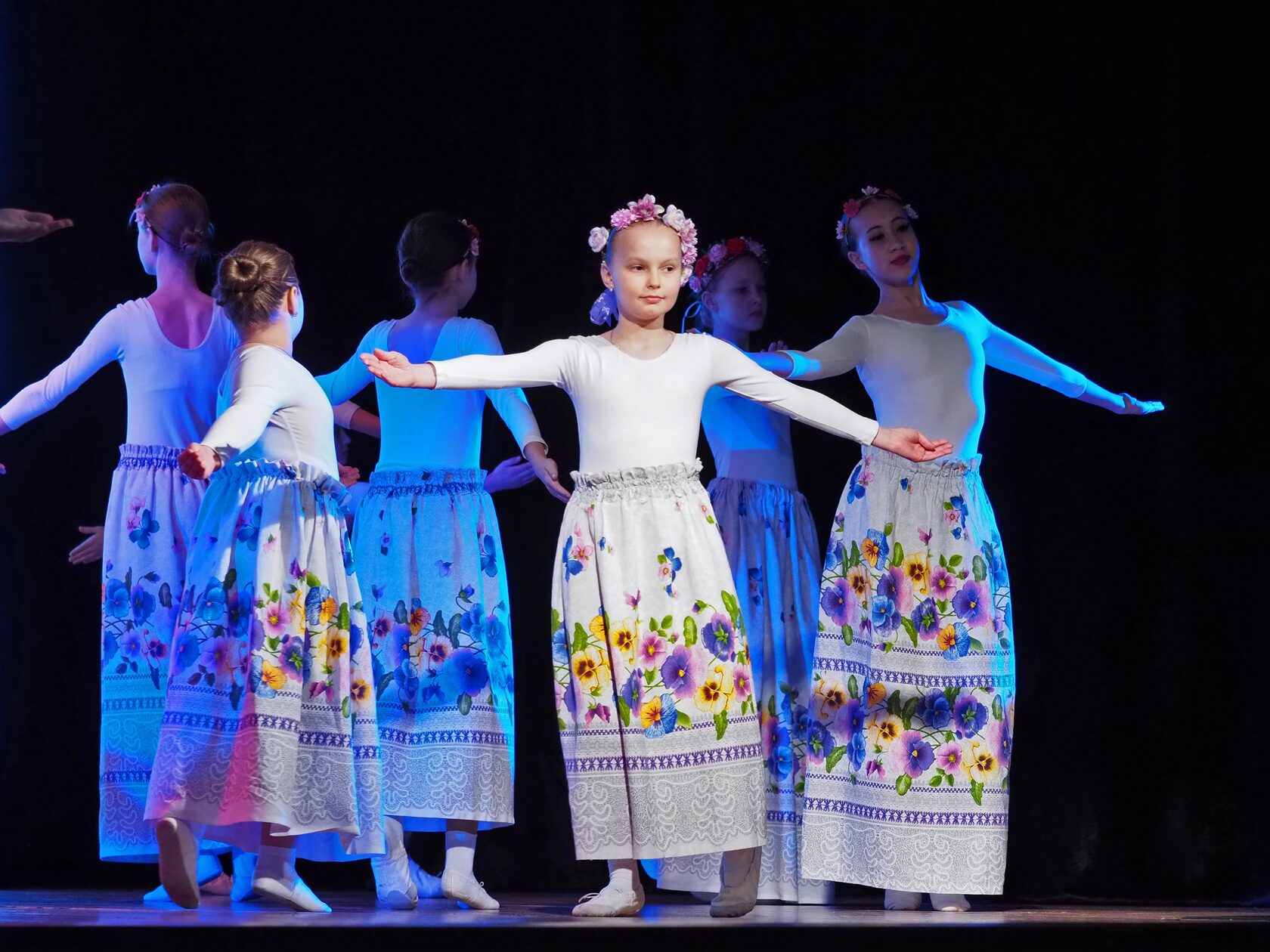 Национальный танец «Хоровод — Гляжу в озера синие» от коллектива «Звездочки» (руководитель Елена Филина), бережно сохранивший русские народные традиции.
